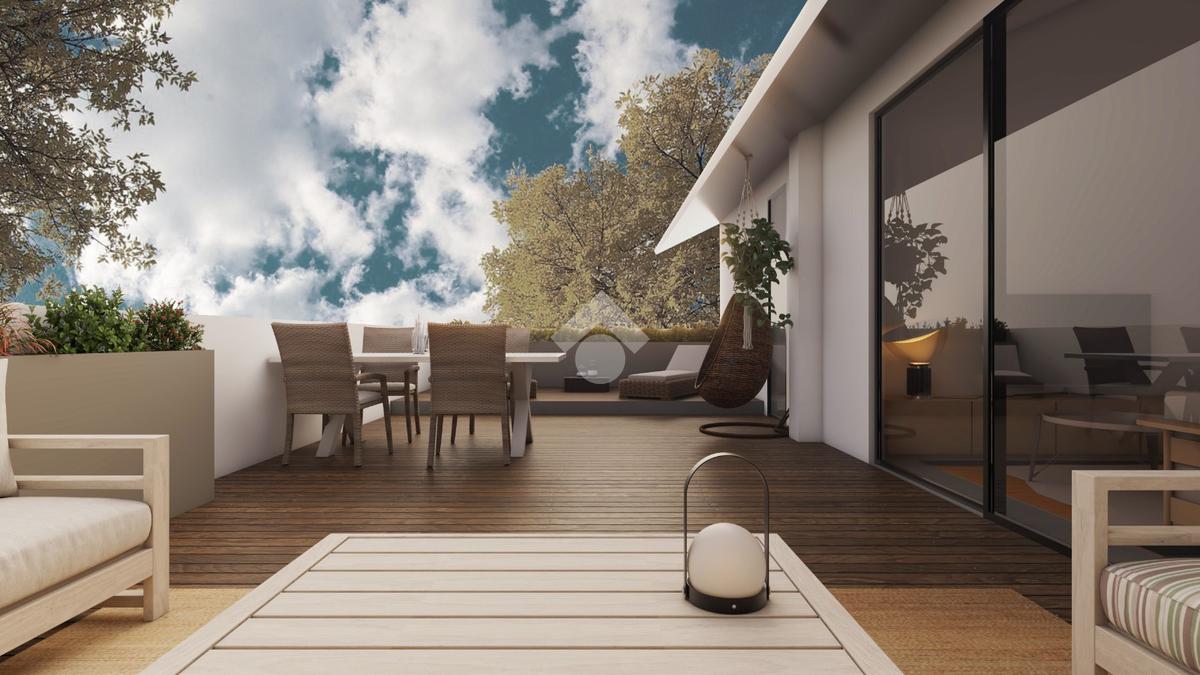 La zona giorno si apre su un ampio terrazzo, perfetto per momenti di relax all'aperto. La cucina è progettata per soddisfare le esigenze quotidiane, mentre le camere da letto offrono tranquillità e privacy.