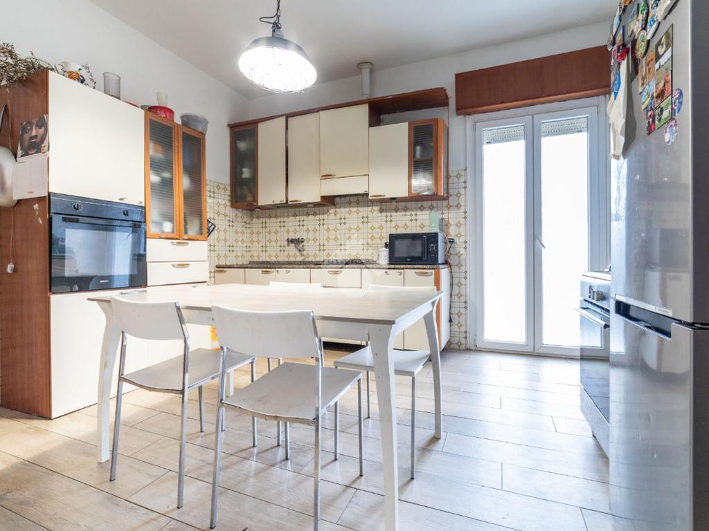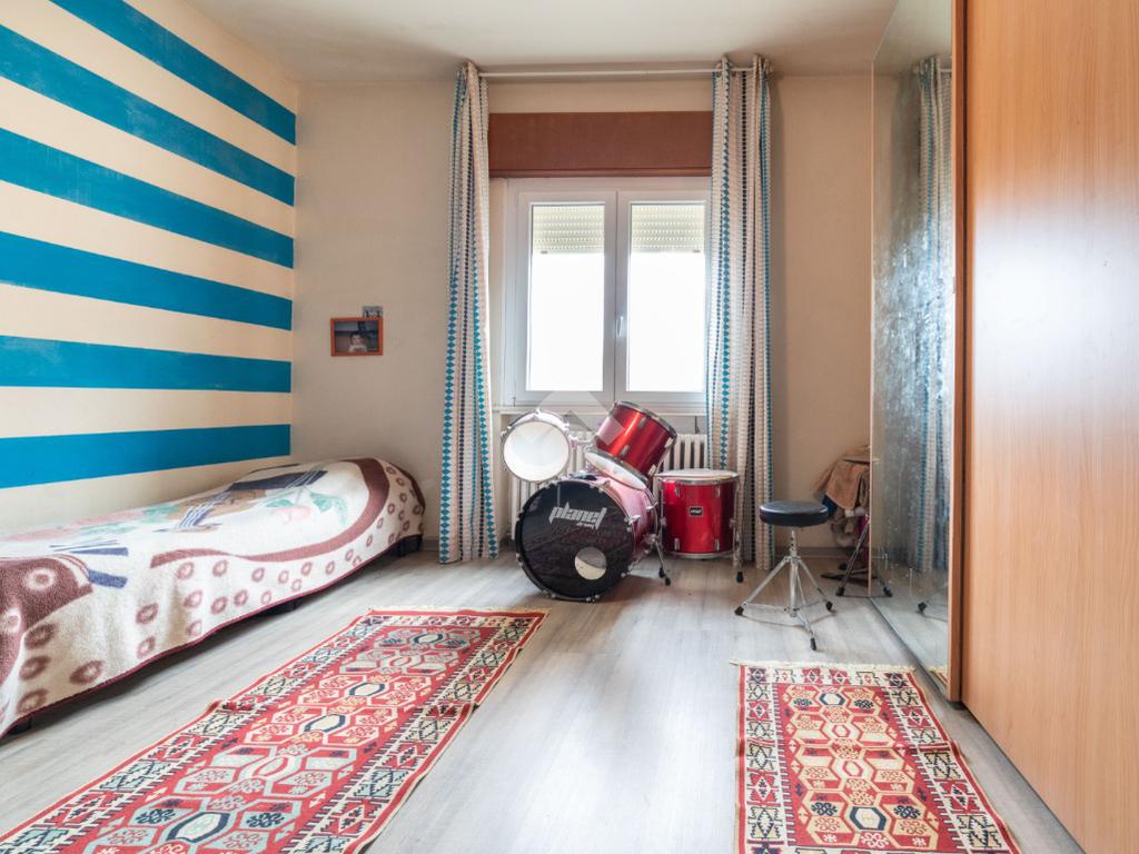 L'immobile offre cinque locali ben distribuiti, ideali per chi cerca spazio e funzionalità. La zona giorno si apre su un luminoso soggiorno con accesso diretto al balcone, perfetto per momenti di relax all'aperto. La cucina è separata, garantendo praticità e comfort. La zona notte comprende tre camere da letto, offrendo spazio sufficiente per tutta la famiglia. Completano la proprietà un bagno finestrato, una funzionale cantina e un vano sottotetto.