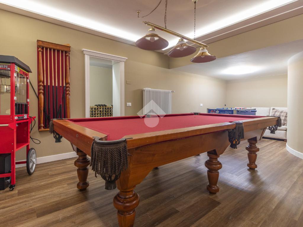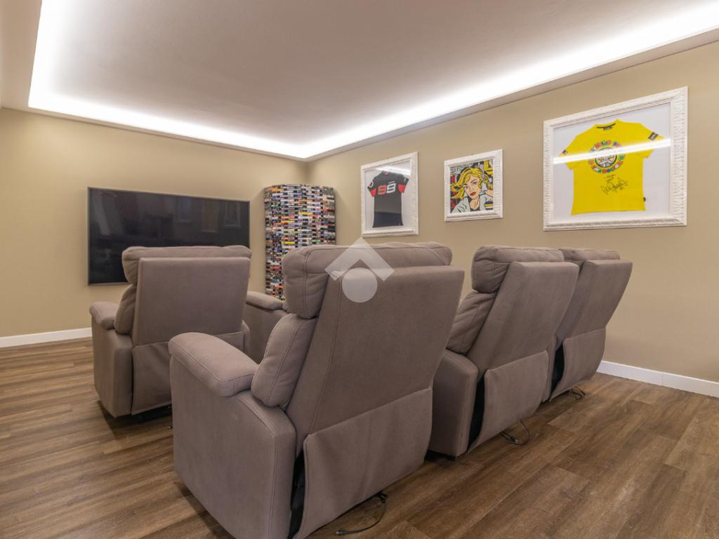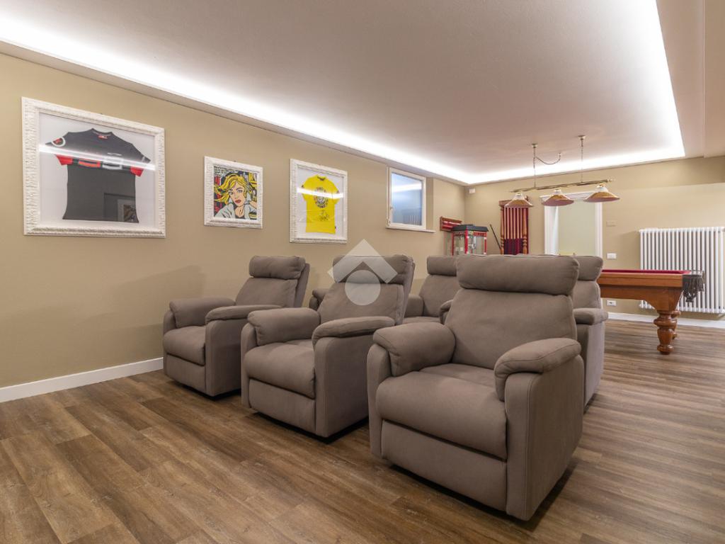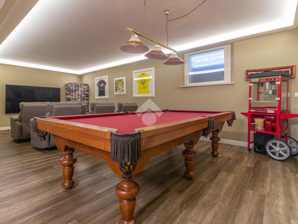 Il piano interrato offre spazi pensati per il tempo libero e la funzionalità: ampia taverna, sala cinema con zona hobby (ping pong), lavanderia, camera ospiti con bagno e comodo garage.